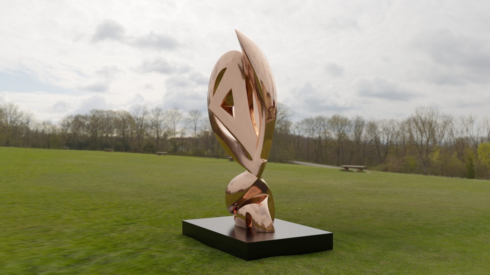 Monumental Modern Art bronze sculpture " The Guardian" is an exeptional beautiful contemporary modern art sculpture that is facinating from every angle. This vertical abstract figure is a bold statement of power in front of your house or company building. It could fit as well in any public sculpture garden or sculpture collection. This polished bronze sculpture "The Guardian" will captivate everyones eye by its geometrical forms. The sharp lines and contoures have an organic flow and stand out and uplift any environment. The highly polished quality of "The Guardian " will shine in the midday sun and it will be stunning to see the sun rays shining through the larger loop holes of the sculpture giving the vieuwer a sensational visual experience.